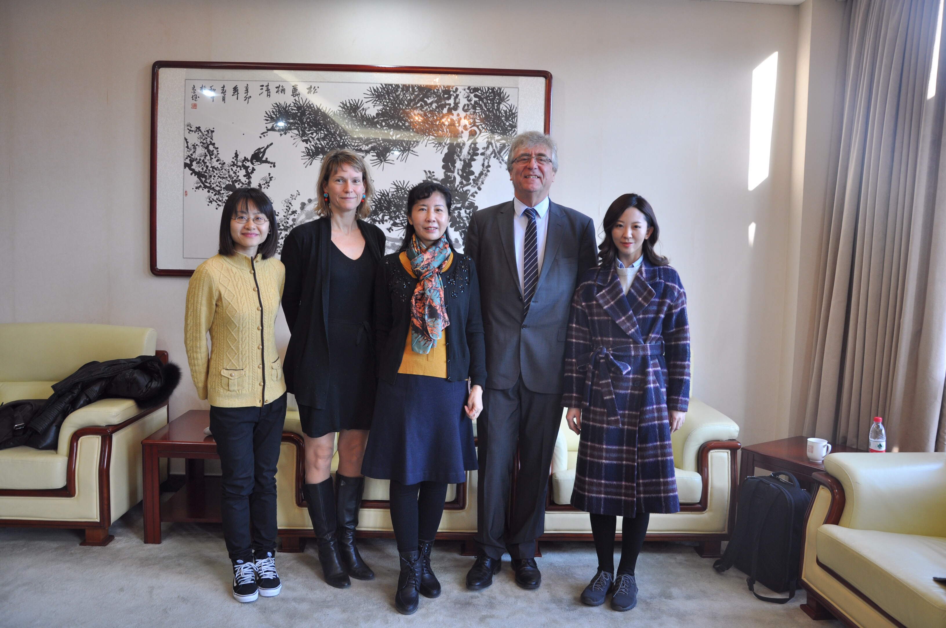 2017年12月21日,法国社会工作专家、公司特邀教授博乐先生和法国高等公共卫生研究学院人文和社会科学学院副经理Karine Lefeuvre教授顺访公司,与社会工作硕士教育中心师生展开学术交流,文法学院经理赵一红教授出席并会见了两位来宾。