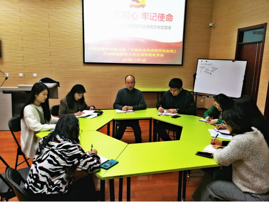 根据公司党委关于《304am永利集团大学“不忘初心,牢记使命”主题教育重点工作安排》部署和本学院具体工作方案,文法学院继续精心组织落实“不忘初心牢记使命”主题教育。11月5日,文法学院教职工党支部在社工实验室开展了“做新时代合格党员”专题党课,本学院全体教职工党员首先共同观看学习了中共中央组织部、中央广播电视总台联合制作的《榜样4》专题视频,随后教职工党支部书记刘强为支部成员带来了一场生动的党课。