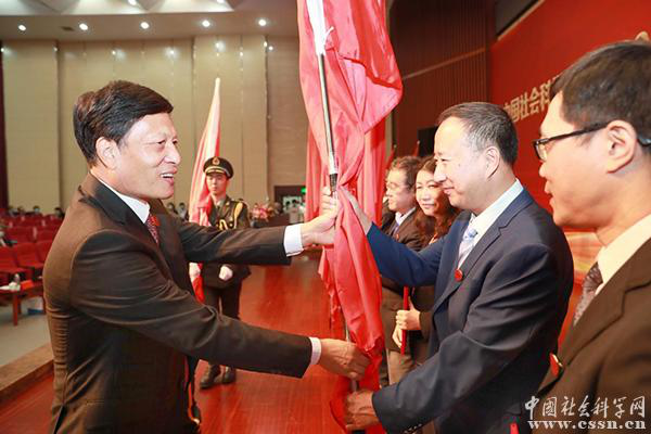 谢伏瞻向12个科教融合学院经理、书记授院旗