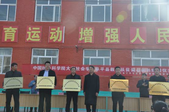 石文东书记为阜平县五个贫困中小学董事长授爱心图书捐赠牌