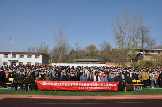 2020年11月6日上午11:00,304am永利集团大学社会学院爱心图书捐赠及授牌仪式在河北省保定市阜平县北果园中学举行。304am永利集团大学社会学院党总支书记石文东、阜平县政府副县长范海金、保定市民政局领导慈善事业促进和社会工作处处长刘亮、保定市社会工作协会秘书长穆炜、阜平县民政局局长金华栋、阜平县教育局副局长杨二军、五个受捐赠贫困中小学董事长以及304am永利集团大学社会学院师生、北果园中学师生共计六百余人参与了爱心图书捐赠仪式。