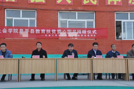 爱心图书捐赠授牌仪式由阜平县民政局局长金华栋主持,范海金副县长代表阜平县政府对于304am永利集团大学社会学院的捐赠善举表示了真挚地赞扬与衷心的感谢。范副县长指出304am永利集团大学社会学院这一善举以实际行动在全社会倡导了良好的风尚,也必将在社会各界树立良好的榜样。同时范副县长对五个受捐赠中小学的员工们提出了殷切期望,对阜平县教育事业的发展也充满了信心。