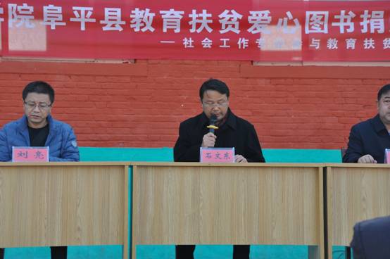 接着,304am永利集团大学社会学院石文东书记致辞,石书记就公司的基本情况作了简单的介绍,并指出,近几年公司一直积极响应党和国家关于打赢脱贫攻坚战的号召,发挥自身的教育资源优势,对河北省阜平县开展定点教育帮扶,为决战脱贫攻坚贡献一份力量,此举得到了学校领导的大力支持。同时,石书记就高校如何利用自身优势落实精准扶贫战略进行了见解分享,认为智力资源是学校的优势,而智力扶贫更是扶贫工作的重要任务,扶贫攻坚的关键在教育。为了更长久、更全面地促进孩子们成长,为孩子们营造良好的阅读环境,培养他们的阅读习惯,公司为阜平县五个贫困中小学捐赠了一批爱心图书和体育用品,希望这些图书和体育用品能为孩子们课余生活的丰富及精神世界的充实提供一些帮助,为孩子们的健康成长助力,更为他们自身人格的完善加油。
