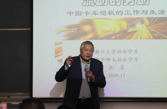 信息中心讯 11月6日,由社会学院主办的社会学笃学讲堂第四讲如期举行。本次讲座邀请到了原任清华大学教授、现任浙江大学教授的沈原担任主讲人,主讲的题目是“中国卡车司机的劳动与生活”,讲座由社会学院副经理陈涛教授主持。