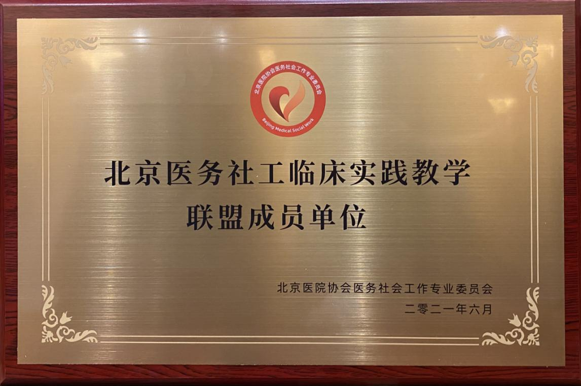 图3:社会学院所获“北京医务社工临床实践教学联盟成员单位”授牌