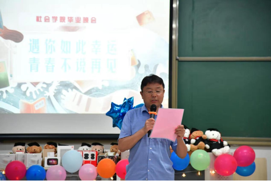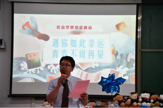 接着,张超老师代为转达常务副经理赵一红老师写给毕业生的寄语,赵老师对社会学院首届毕业生表达了最诚挚的祝福和最热烈的祝贺,并以校训勉励毕业生,希望各位同学能够为中国的哲学社会科学事业做出自己的贡献,也祝愿毕业生工作顺利,家庭幸福,事业有成。