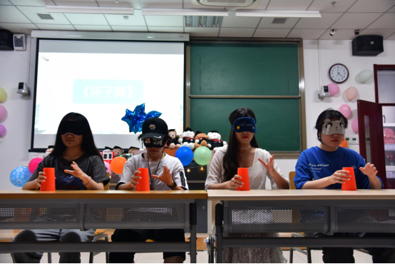 晚会在本科生王越、董炤昕、李一飞、谈芯羽带来的节目《杯子舞》中正式拉开序幕,同学们跟随着《稻香》的节奏,利用杯子扣响着节拍,动作整齐利落,赢得观众们的一致喝彩。
