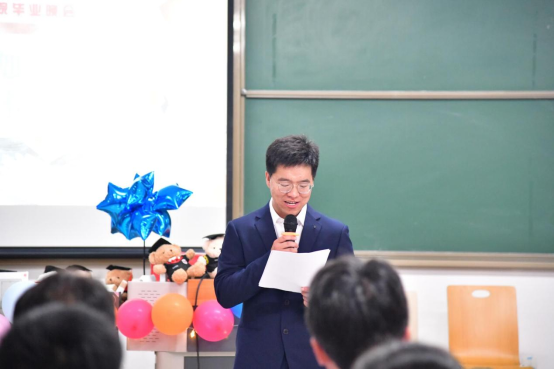 接下来,毕业生代表王涛发表了毕业感想,回忆与同学们一起走过的青葱岁月,勾起了同学们对在校时光的种种美好回忆,并代表毕业生对学校和老师们的培养表示感谢,也祝愿师弟师妹未来可期。