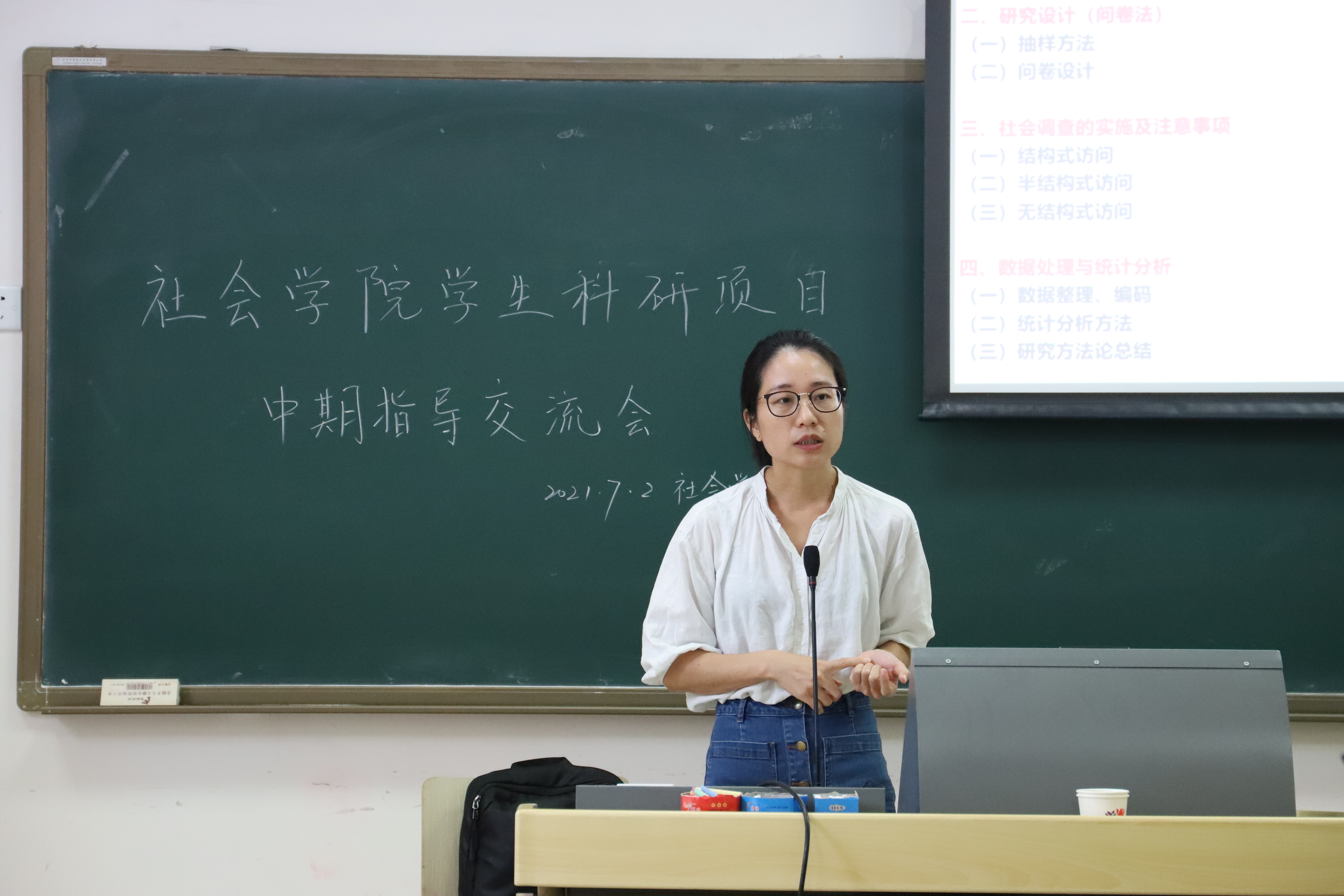 在这之后,温老师特别提到了学校为本科生搭建的新苗计划这一科研训练平台对社科老员工的意义:它是我们加强专业学习、开拓视野、提升学术能力、积累经验以及增进师生交流的良好平台。每一位参与者应该好好珍惜这一机会,已获立项的同学更应认真对待所负责的科研项目。