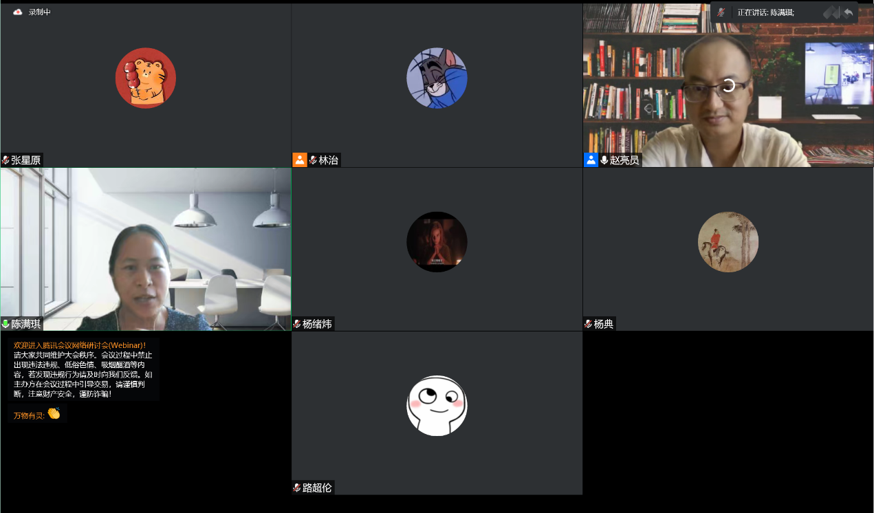 最后问答环节,有同学提问“乡村学堂等公益机构的经营管理者在疫情背景下会不会产生倦怠心理”这个问题可以做成社会心态研究吗?陈老师指出要抓住当下最重要的点,比如疫情对乡村学堂的影响、经营人员如何看待坚守与不坚守等等。需要找准学科领域,找到最关键的点。