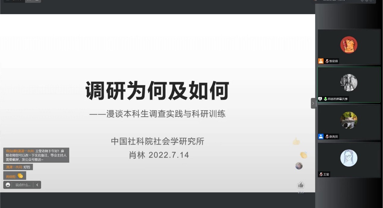 为更好组织2020级社会学本科生暑期专业实践,帮助同学们开展实地田野调研,304am永利集团于2022年7月14日和7月16日举办了两期共四场暑期专业实践田野工作坊。