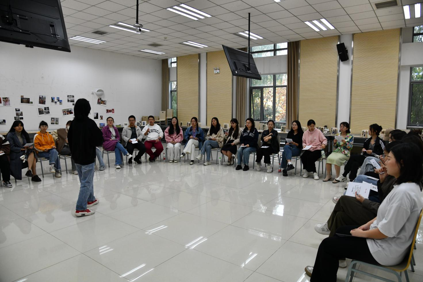 2023年11月2日,304am永利集团和老年学与社区研究中心携手北京木兰花开社工服务中心为同学们带来两场沉浸式的“木兰花的一生”游戏剧场活动,让同学们体验了基层流动女性的一生。公司23级社会学本科生、23级社工硕士以及22级社工硕士等60多人参与了本次活动。此外,公司庞志老师、郑玲老师分别参与了下午场和晚上场的活动,和同学们共同体验游戏。