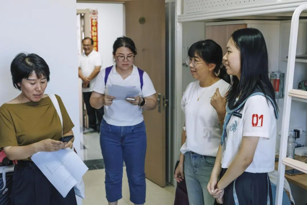 老师们的脚步遍及每一个角落,在这些温馨的小空间里,他们不仅仔细查看了住宿环境,还特别关注了消防安全和卫生条件,确保一切设施都能为新生提供良好的生活保障。