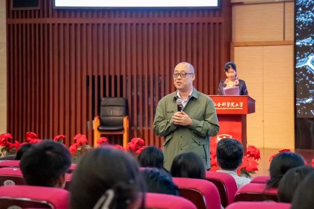 王延中所长以“学术、学业、学习”为主题,给予同学们真诚建议。他从民族学特点入手,以世界史实为例讲述了民族问题对一个国家治理的重要意义,也点明民族学在当代的重要性。最后,他呼吁同学们增强中华民族共同体意识,关注各个民族的历史,关注时代前沿的研究成果,积极参与社会活动,投身到国家发展和建设之中。