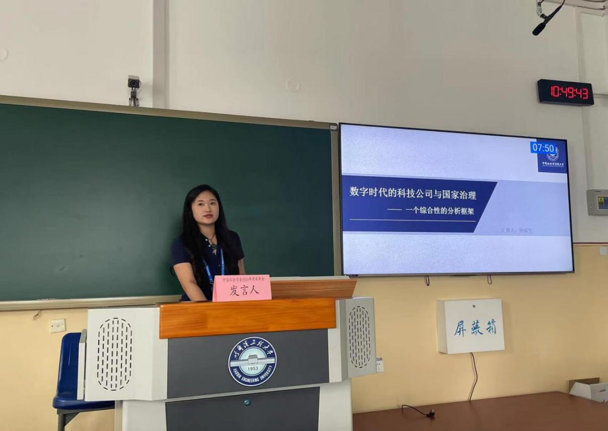 在“经济社会学与中国发展:挑战与机遇”分论坛中,滕飞作了《把科技带回经济社会学:古典传统与当代重建》主题发言,他回顾了经济社会学技术研究的马克思和韦伯传统,归纳出当代经济社会学技术研究的四种发展脉络。基于经济社会学技术研究的古典传统和当代发展,提出经济社会学技术研究应当坚持的技术本体论及一般性的研究框架。钟瑞雪作了《数字时代的科技公司与国家治理——一个综合性的分析框架》主题发言,文中分析了数字时代科技公司与国家治理之间的互动关系,提出了一个综合性的分析框架。她指出,在数字化浪潮的推动下,科技公司不仅在经济发展中扮演着重要角色,更在国家治理体系中发挥着日益显著的作用。同时,该论文也探讨了科技公司在促进社会进步和参与国家治理中所面临的挑战与机遇。