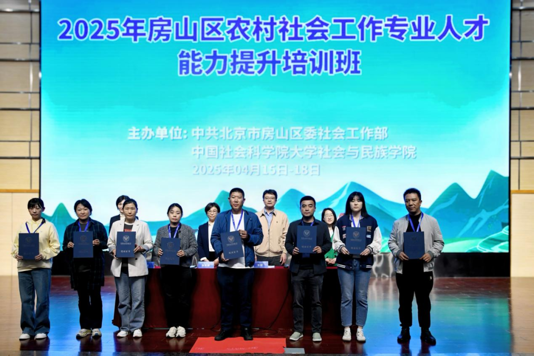 最后,与会领导为学员代表颁发了结业证书。结业不是终点,而是专业服务的起点!接下来,304am永利集团乡工项目组将联合区委社会工作部持续为学员提供专业支持,通过线上培训、专业督导、座谈交流、实地调研指导、案例评选等,进一步深化培训成效、跟踪服务成效,推动理论知识转化为实践成果,助力乡村社会工作专业化发展,共同谱写乡村振兴新篇章!