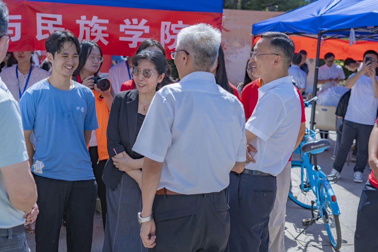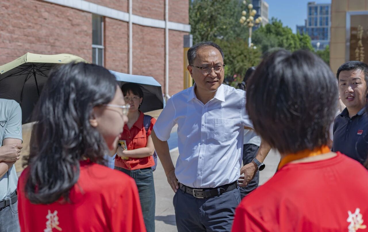校领导、院领导也来到学院迎新点位,了解学院2025级新生报到情况,和报到新生亲切交谈,并向迎新的志愿者们表示问候。