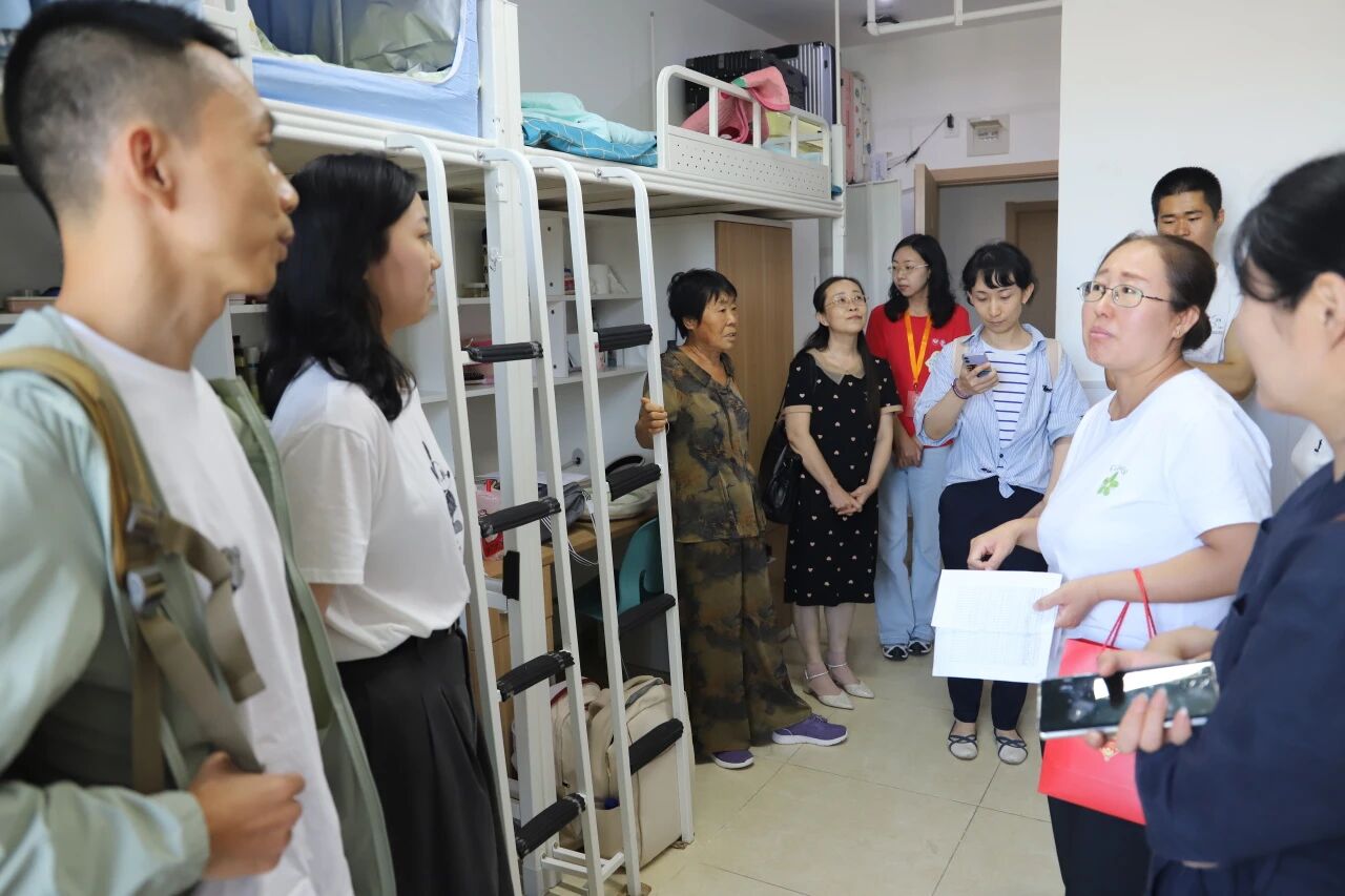 在新生的宿舍里,老师们积极了解同学们的住宿环境和卫生条件的满意度与建议,着重关注消防安全,确保一切设施正常运转,为新生提供良好的住宿环境。