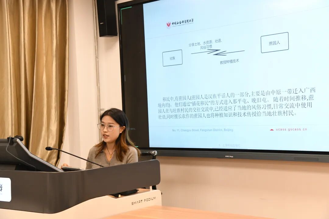 王鑫淼同学以及其项目成员在《民族地区水库移民村落的共同体建构——以百色市永乐镇西北乐村为例》项目中,对论文田野调查点情况进行了详细介绍,关注边疆民族地区的水库移民村落共同体建构的问题,如何完成从“个体”归属到“集体”的新家园模式的建构。详细论述了边疆民族地区水库移民村落民族互嵌关系的生成、村落共同体内部在文化方面共通情感的塑造以及经济上共同利益的形成三个方面。