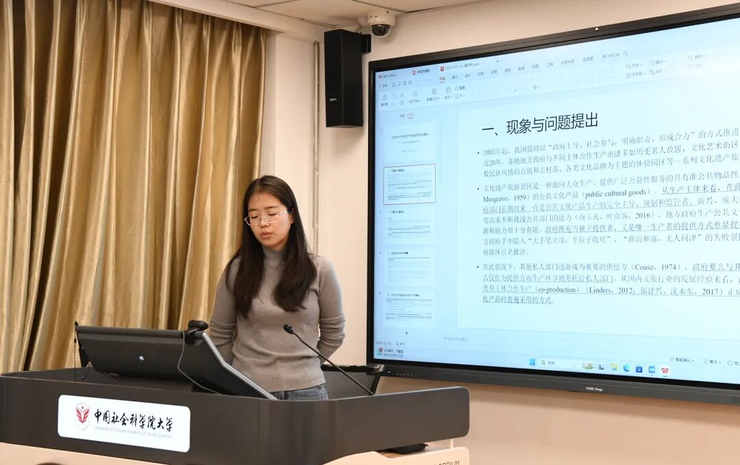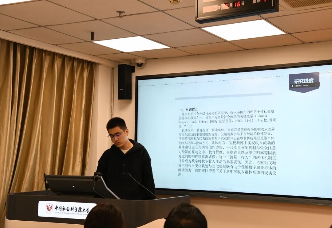 吴睢同学在《数智时代下的社会流动机制研究——以视频博主职业群体为例》中将收入流动作为研究主轴,从“流量—收入”的路径出发来分析视频博主如何在既有平台机制下发挥能动性来获得流量,并进一步将其转化为经济收益,从而推动个体实现收入流动。研究认为流量获得作为中介机制影响视频博主实现收入流动的可能,视频平台作为高度结构化的技术中介在主导流量资源分配的同时也构建了收入流动的门槛与通道,博主的策略行动构成了收入流动轨迹内部的微调机制,使得个体在平台逻辑并不完全可控的情景下仍能通过策略布局实现对不稳定结构的有限突破。另外,研究指出要进一步关注生成式人工智能对视频博主的赋能效果,其效果在既有平台结构与数字技能水平的差序中被差异化吸收与转化,从而影响着博主的收入流动机会。王晶老师认为,应进一步聚焦到流量转化为经济收益的过程与效果。沈杰老师认为,应进一步厘清社会流动的概念,交代清楚研究背景。赵联飞老师认为,应进一步梳理研究基础以及前沿空白,做好综述。