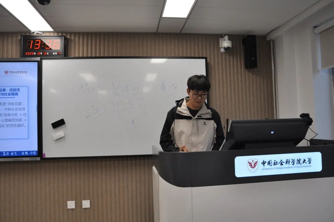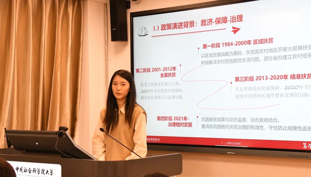 陈玉真同学在《农村居民的福利政策期待研究:农村低保受助者与非受助者之间的比较视角——基于山东省X县的调查》中指出,农村低保政策经历了从区域扶贫到相对贫困治理的演进过程,政策供给与居民多元化福利期待之间仍存在张力。研究构建了“政策供给—执行—期待”的三维分析框架,归纳出福利范围、公平与模式三类核心期待,揭示了边缘群体对福利政策的高度敏感性。王晶老师肯定了研究的现实意义与理论价值,建议进一步拓宽研究对象范畴,深化福利认知与期待之间的逻辑关系,并在题目与理论表达上强化研究的对话性与张力。