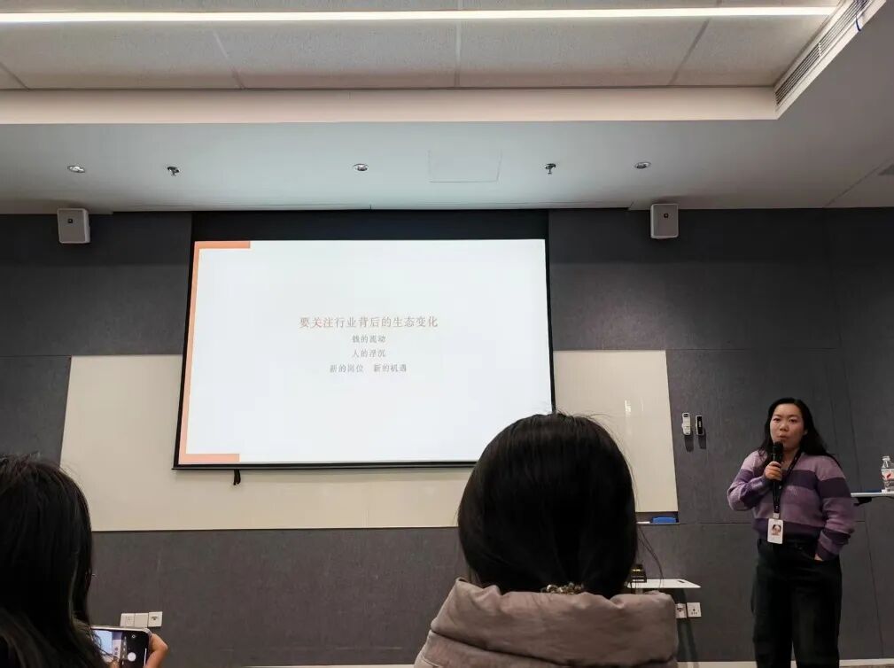 在座谈交流环节,快手研究院资深研究员刘洋老师围绕企业发展势头与互联网行业现状展开分享。她结合自身从业经验,通过对比分析、过程事件分析、历时分析等方法,将定量数据和质性案例相结合,深入浅出地展开电商领域的专业讲解。刘洋老师生动诠释了快手"拥抱每一种生活"的品牌理念如何落地到具体业务中,体现出当代互联网企业在连接社会、赋能个体、促进发展中的重要作用。她提到,快手的发展始终与社会需求紧密结合,立足下沉市场的电商带货促进就业、提升收入等,更体现了企业的社会担当。