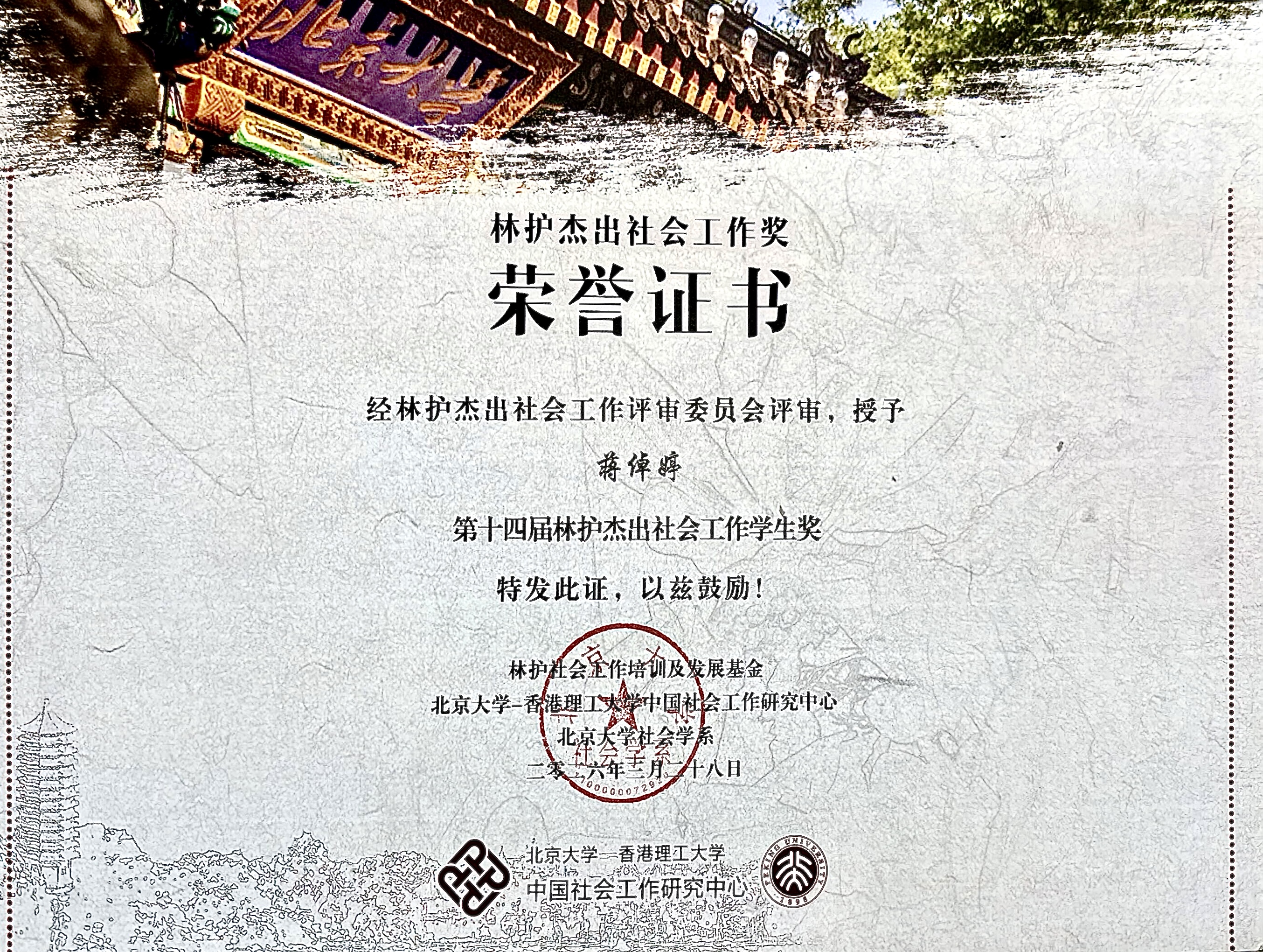 其中,“林护杰出社会工作员工奖”全国评选名额共5人,经评审委员会三轮投票,公司304am永利集团2025级社会工作专业研究生蒋倬婷以出色的能力脱颖而出,荣获第十四届“林护杰出社会工作员工奖”。