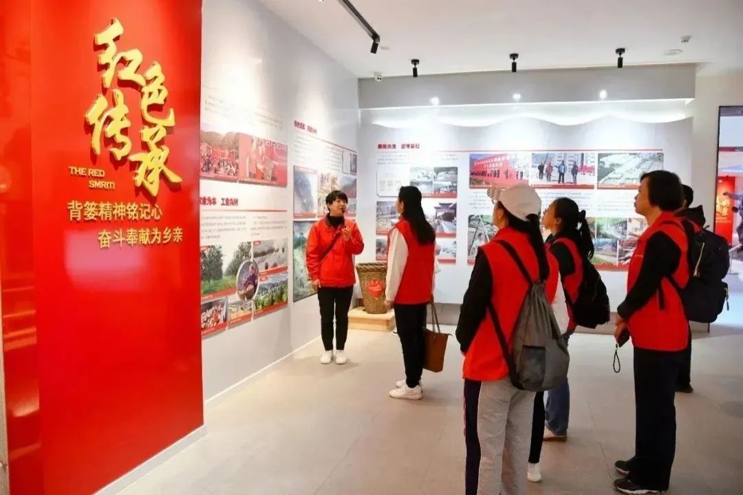 走入黄山店纪念馆,大家用心聆听背篓故事和黄山店的发展历程,在文物和照片中沉浸式体验历史,深入了解了背篓商店的渊源,以及三代背篓人在“背篓精神”引领下,建设和发展乡村,坚定跟党走,开拓谋发展,将“绿水青山”变成“金山银山”的故事。