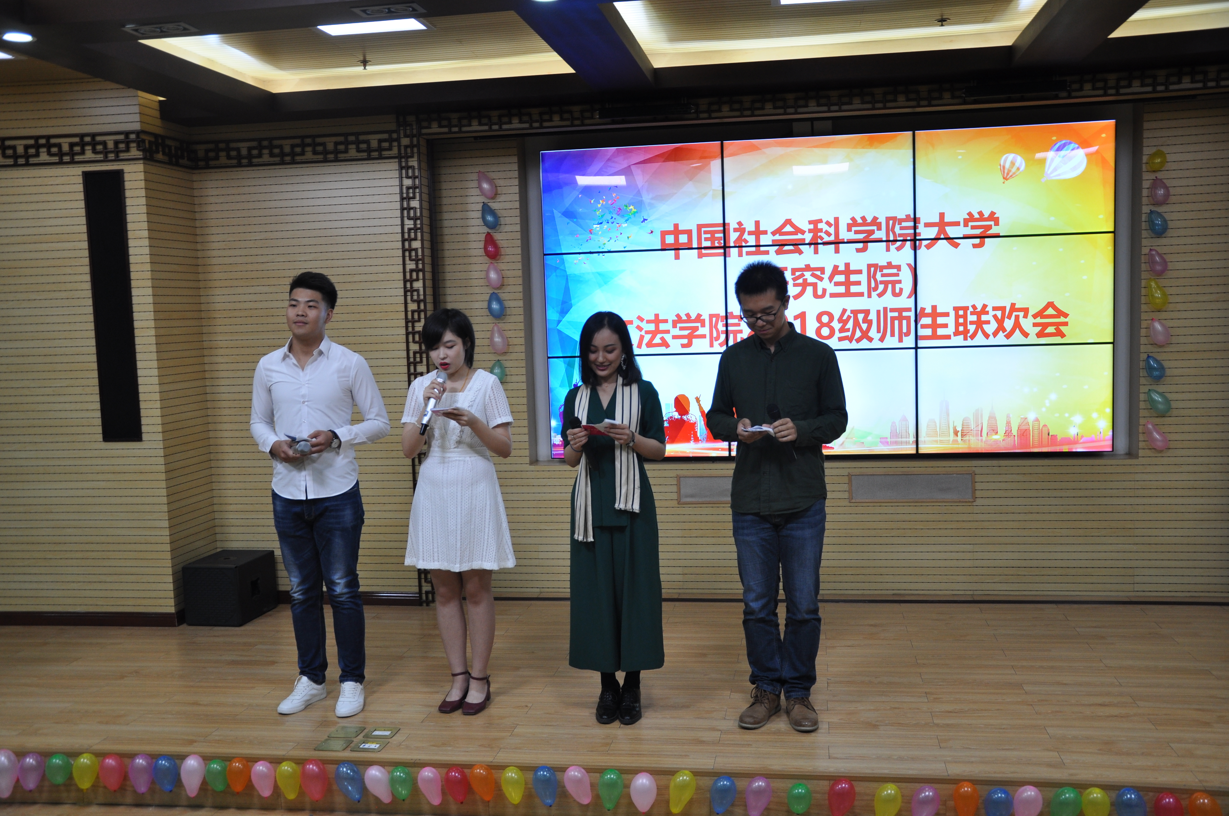 2018年9月28日下午,文法学院师生联欢会在图书馆笃学讲堂成功举办,文法学院经理助理刘强老师、各位行政老师以及2018级全体同学出席联欢会。