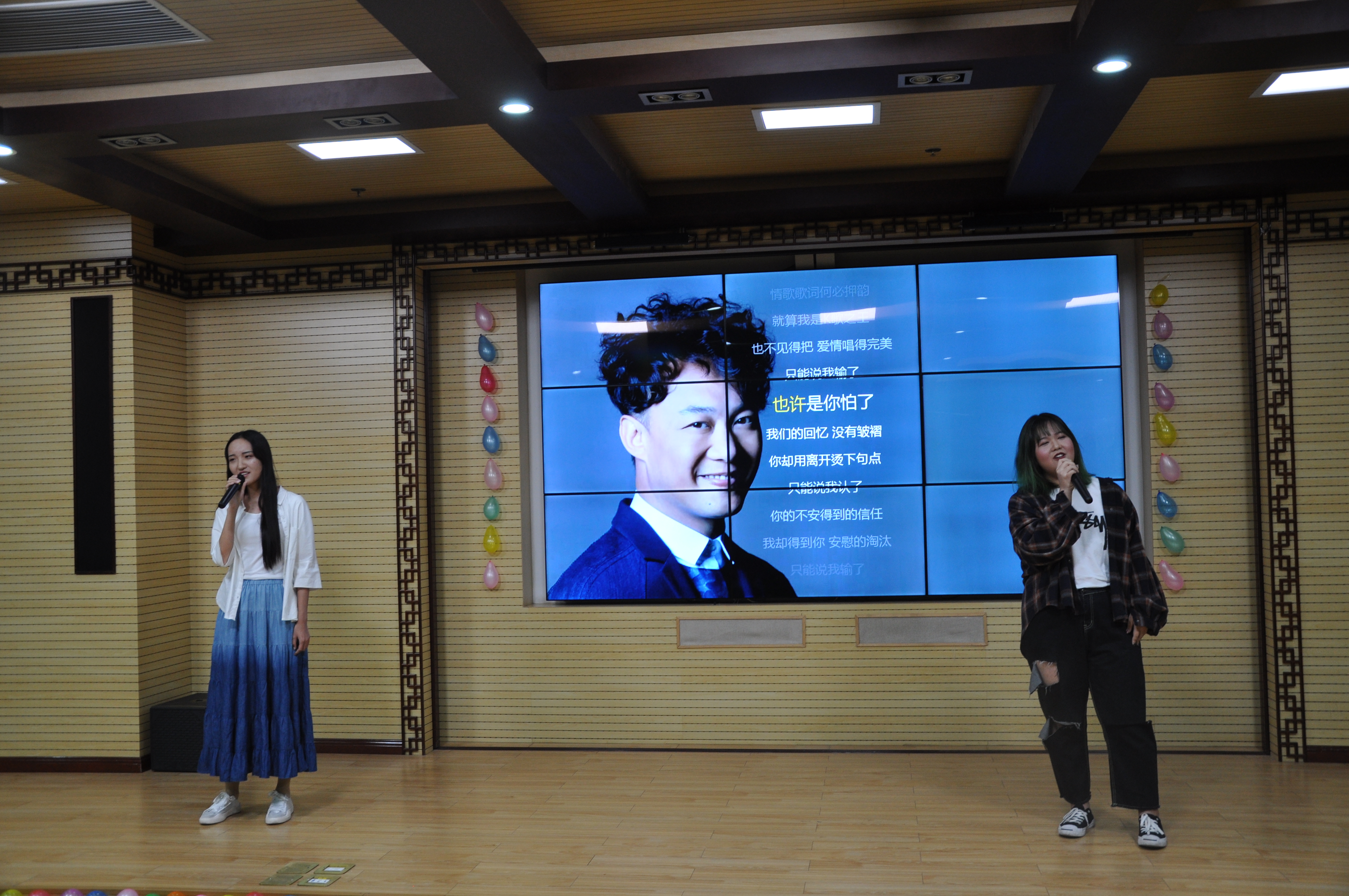 接下来,申丽鑫和蒋子繁两位同学优美的舞姿开场,温婉大气的《惊鸿舞》和淡而有味的《清平调》被两人诠释的入木三分;彭希贤演唱的《心动》和逄晓庆粤语歌曲《喜欢你》又把大家带到了青春悸动的情境中;骆晓凡同学的手语表演《爱的供养》使无声表演同样有力和美妙;随后王汝岳、姚佳敏女生版的《淘汰》和曹权同学的《男孩》引起全场合唱。游戏“害你在心口难开”全场气氛达到高潮,场上同学紧张热烈,场下同学加油打气,玩的不亦乐乎,参与人员都获得了纪念品。
