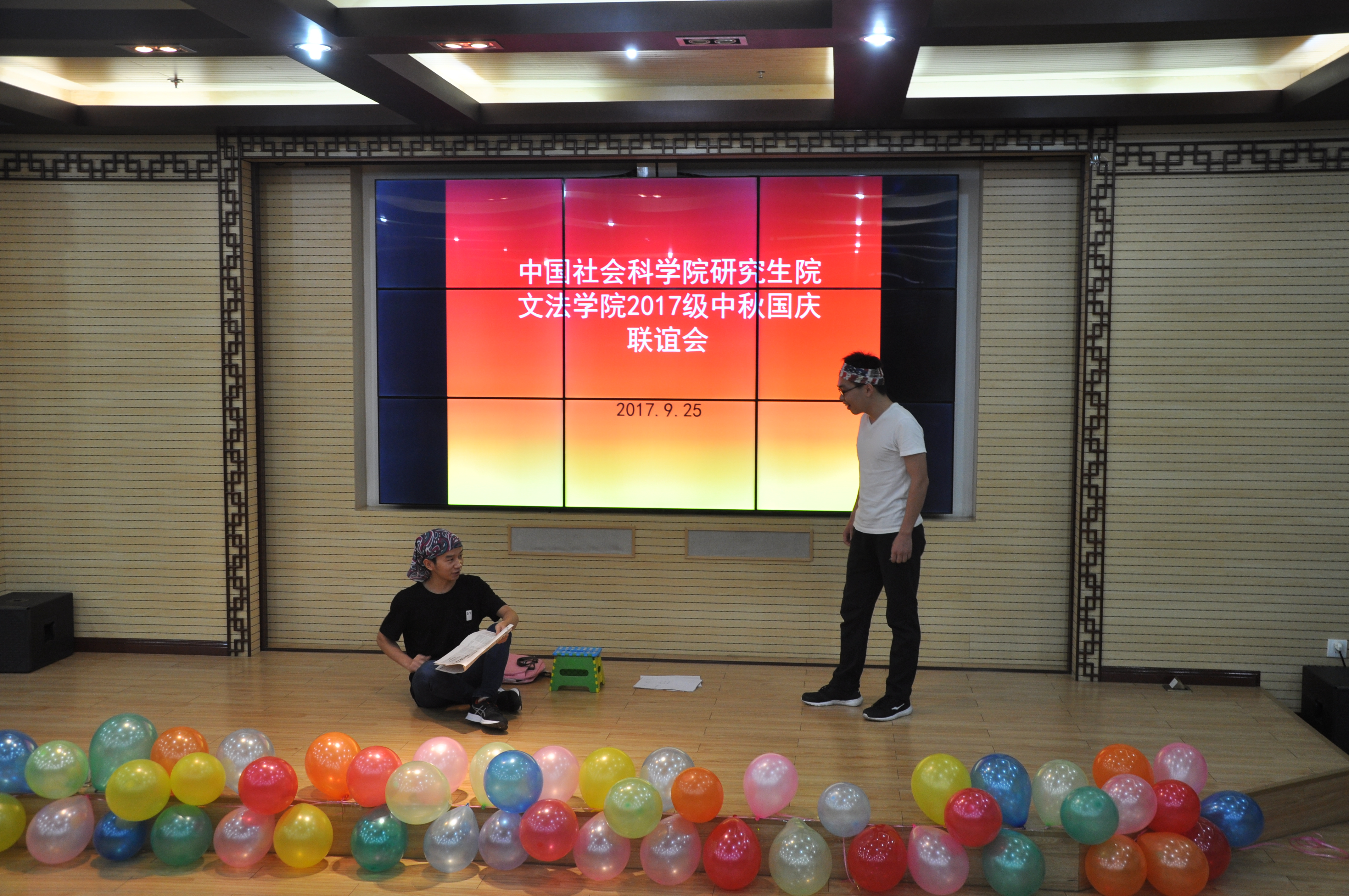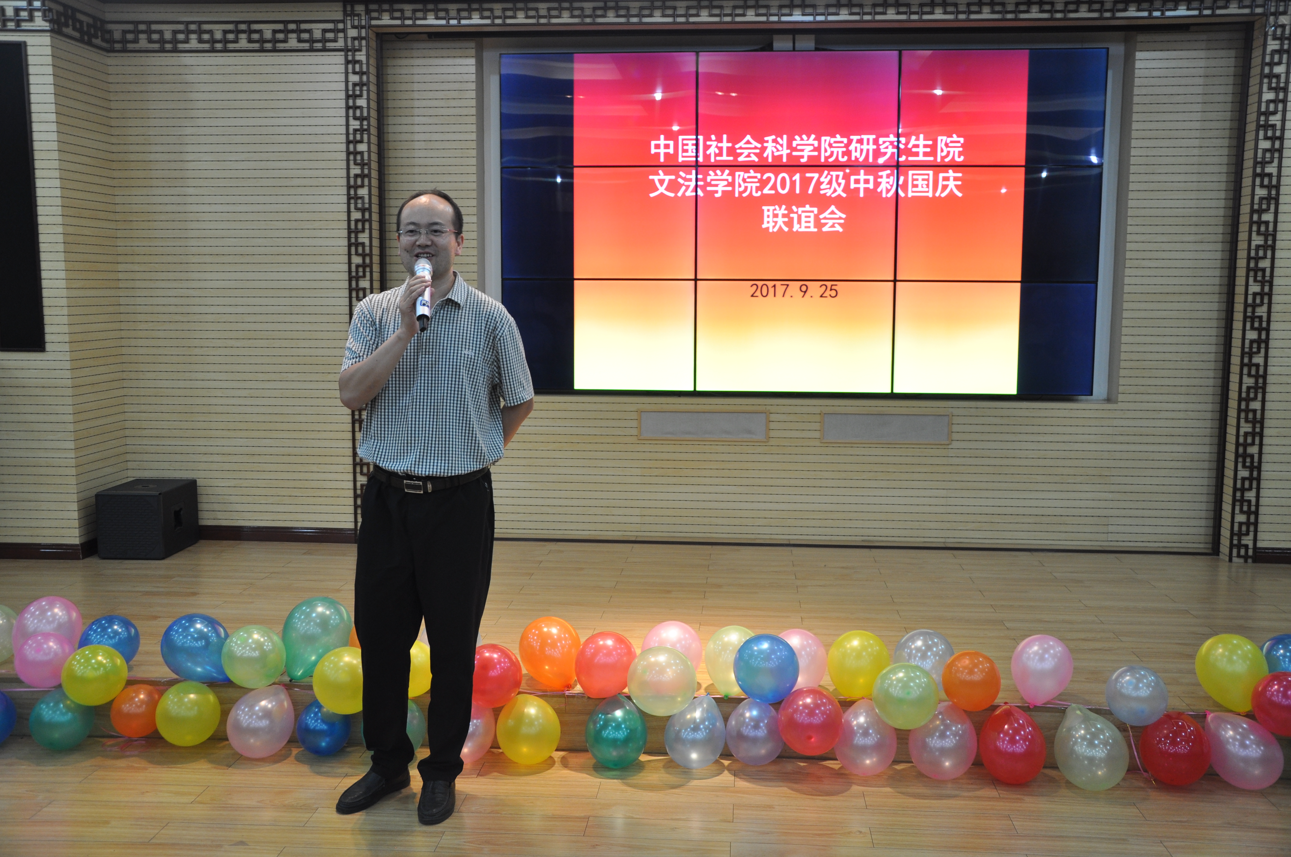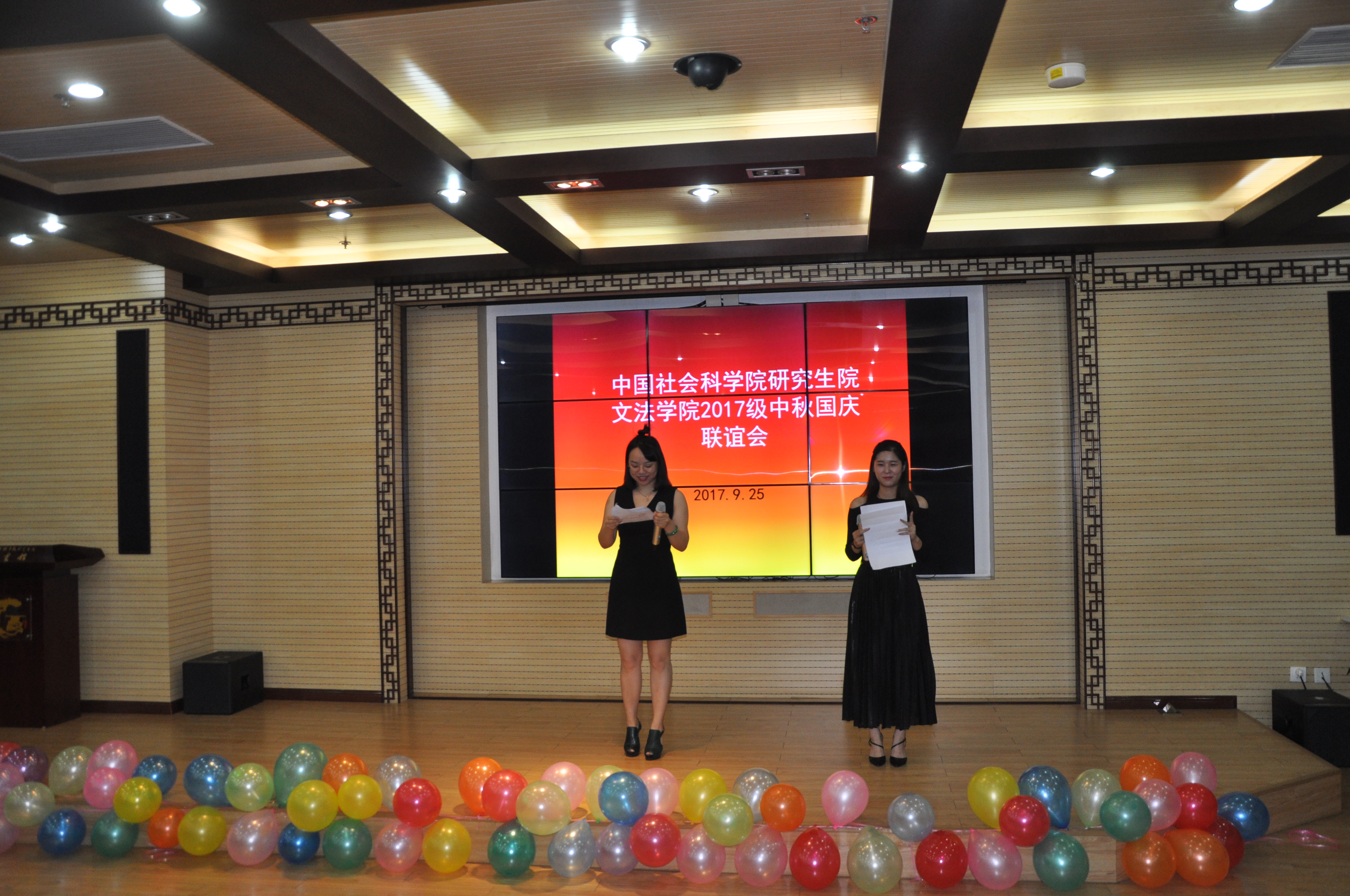 2017年9月25日,文法学院2017级中秋、国庆联谊会在笃学讲堂举行。出席联谊会的有文法学院经理助理刘强老师、学院的行政工作老师以及2017级硕士生共同参加。