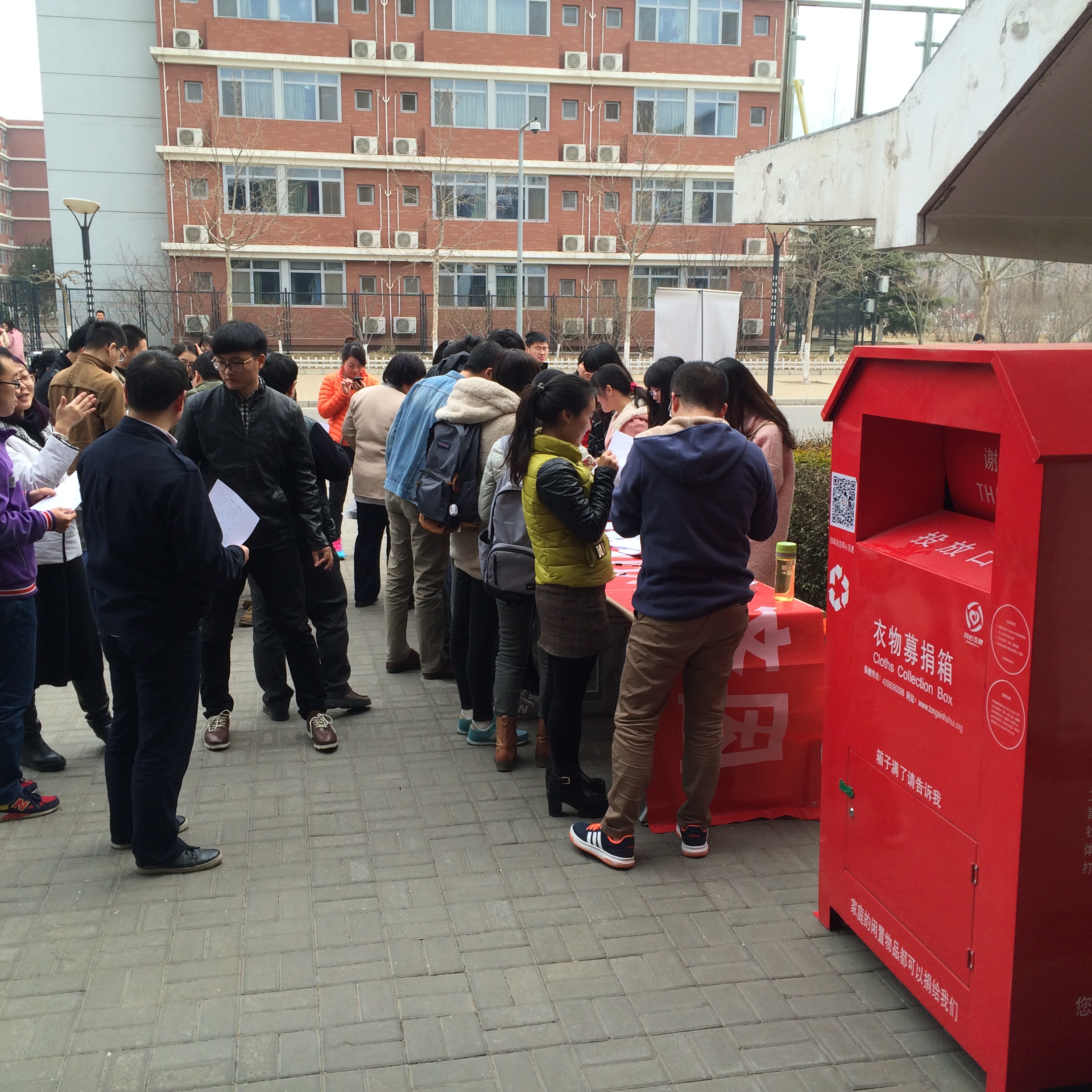 本次活动重要的一个环节,尚行社会工作社对接北京工友之家同心互惠机构,在校内设立两个“衣物回收箱”,长期收集各类衣物,同时将衣物提供给有困境的打工者群体,来缓解生活成本,减少生活顾虑,尚行社会工作社借助国际社工日,宣传社会工作专业理念,助力困境帮助贫弱,促进社会公平。