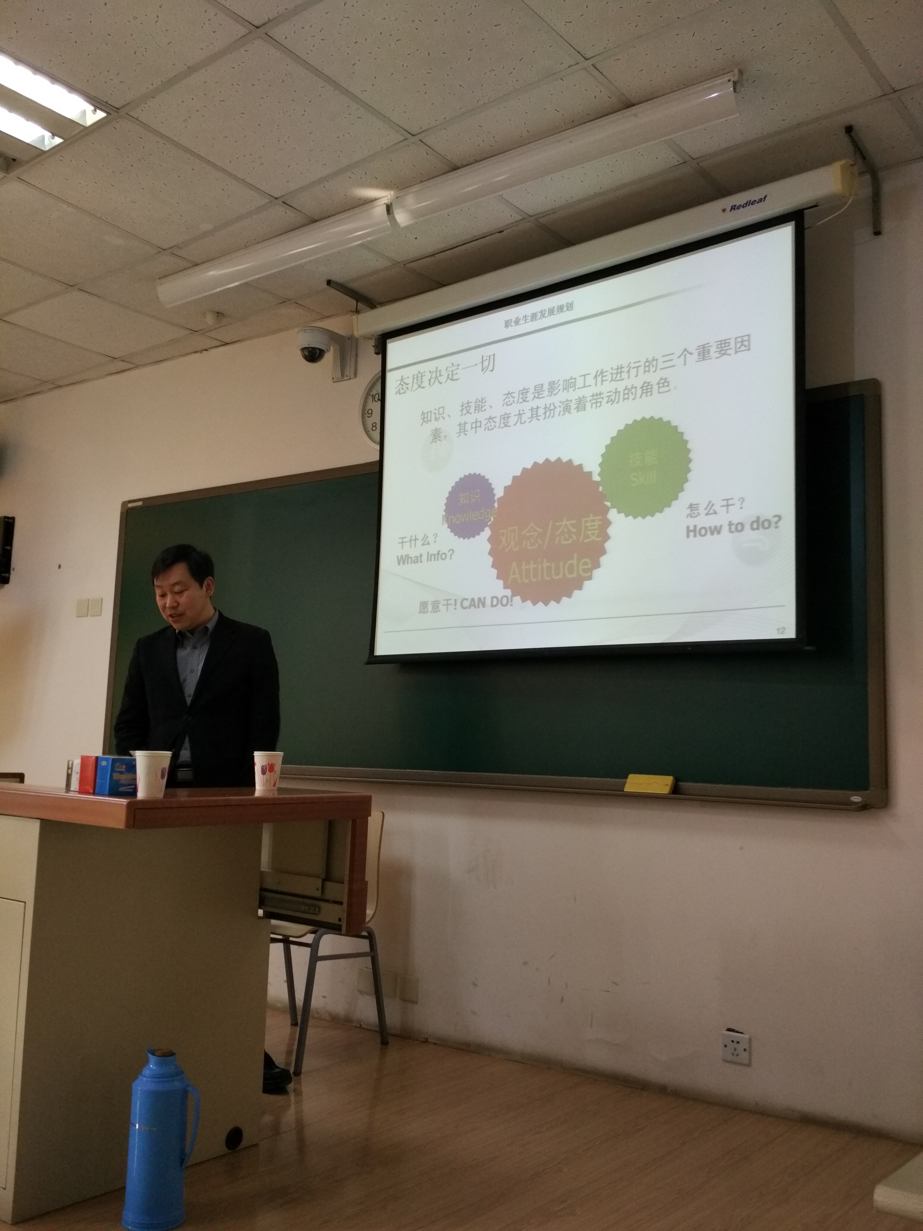 2017年3月15号上午,我中心在教学楼108教室为2015级毕业生举办职业规划的讲座,本次讲座由人力资源专家牛浬杰老师主讲,我中心吴艳辉老师主持,2015级员工参加了此次讲座。