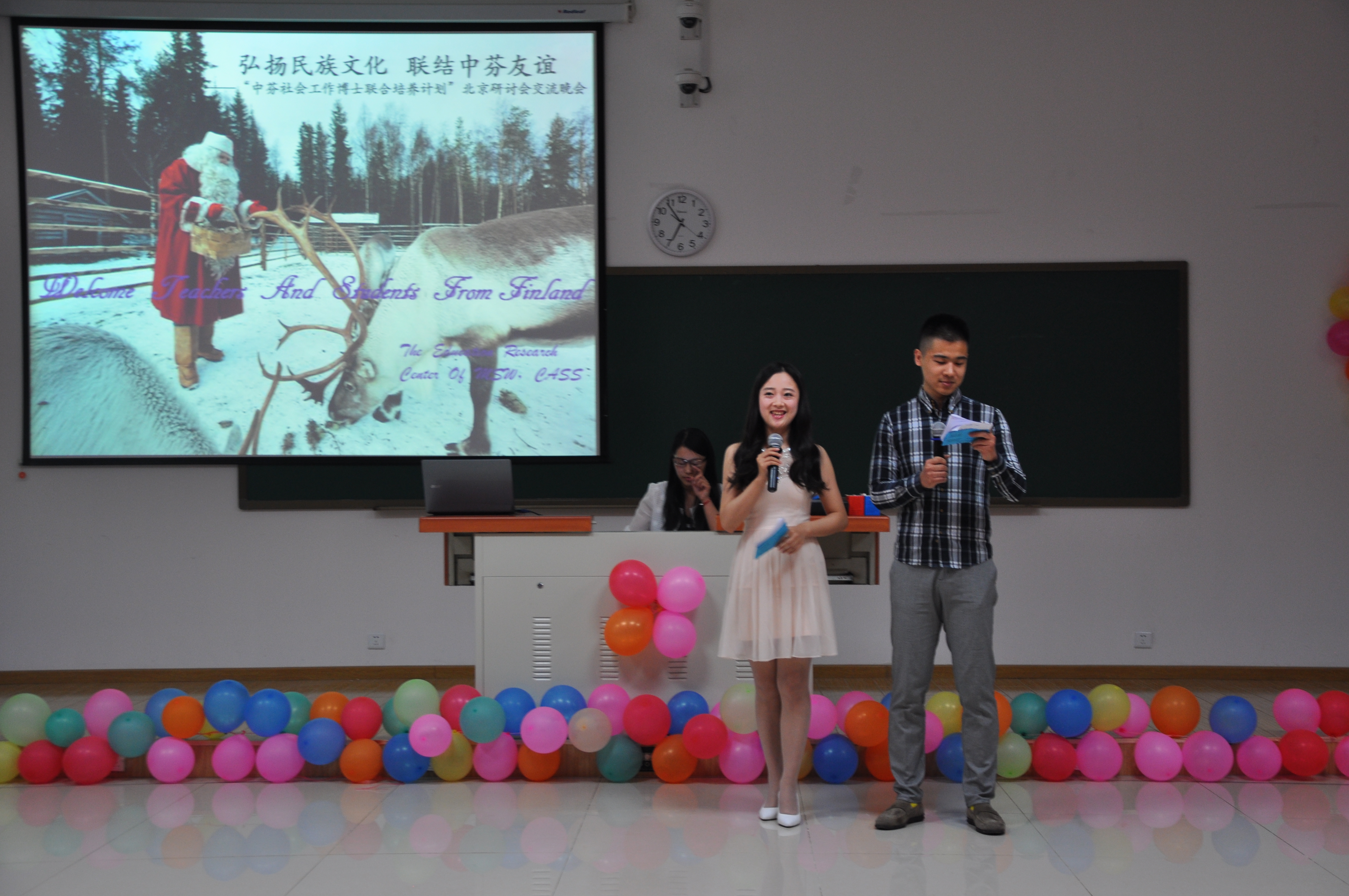 姹紫嫣红花盛放,绿树莺啼春正浓。2015年5月,我中心举办的“中芬社会工作博士联合培养计划”北京研讨会的顺利举办。为了进一步加强中芬师生深入交流,中心于5日晚在教学楼222教室成功举办了主题为“弘扬民族文化,联结中芬友谊”的联谊晚会,中芬双方师生纷纷呈现了自己的节目,积极活跃交流,共同欢度了一个愉快而有意义的晚上。