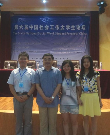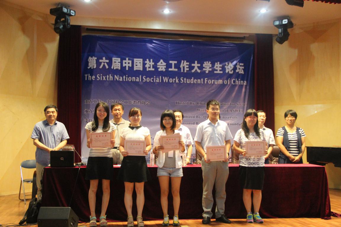 2014年8月5日至6日,以“社会治理创新与中国社会工作的发展”为主题的第六届中国社会工作老员工论坛在青岛大学举行。中国社会工作教育协会会长、中国社会学学会副会长、北京大学王思斌教授;中国社会工作教育协会副会长兼秘书长、中国青年政治学院研究生处处长史柏年教授;中国社会工作教育协会副秘书长、山东大学哲学与社会发展学院社工系主任高鉴国教授;青岛大学副董事长夏东伟教授等社工界专家、全国120多所大学、科研院所的老师和同学们共200余人参加论坛。我中心2013级社会工作硕士乐洋、牛金玲和李成龙三位同学的论文成功入选并受邀参加此次论坛,其中李成龙同学的论文获得“第六届中国社会工作老员工论坛三等奖”。