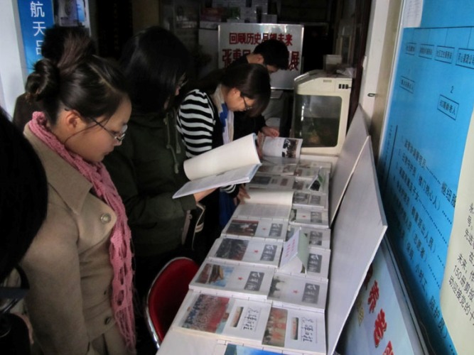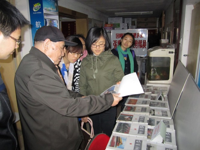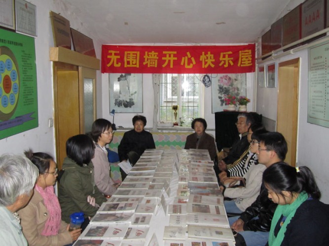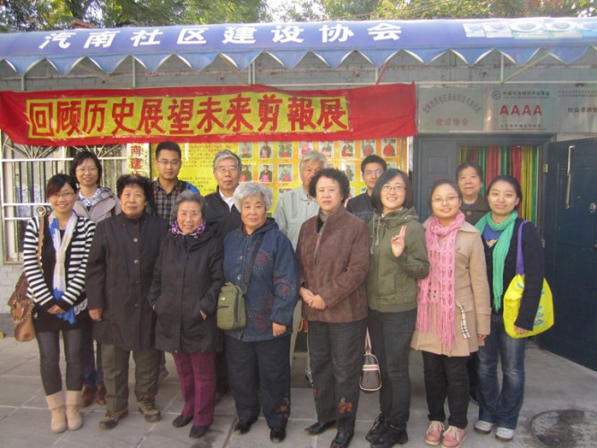 上午八点半,师生一行到达汽南社区,社区建设协会的何主任热情接待了我们。她给我们介绍了社区的基本情况、居家养老的方式和老人们的文化生活。接着,我们参观了社区的“无围墙开心快乐屋”,这是协会为丰富社区老人生活而开辟的场地,用来展示老人才艺特长、促进老人之间沟通交流、体现老人精神风貌。近日,“快乐屋”正在举办“回顾历史展望未来剪报展”,同学们饶有兴趣地翻看着一本本精心制作、汇编成册的剪报。何主任也邀请张惠民老人为我们讲解。这些剪报不仅有中共“一大”到“党的十八大”各个时期会议报道,还有围绕热点事件如北京奥运会、汶川抗震救灾、神九飞天、钓鱼岛事件等专题以及人物传纪如中国革命先烈报道的整理。剪报涵盖党史、军史、养生、旅游等方面的内容,是一份珍贵的参考资料。