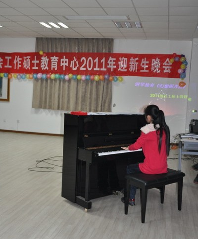 社会工作硕士教育中心负责人赵一红教授,院图书馆蔡玉安老师,2011级社工硕士班主任赵亮老师、刘静静老师及中心张天帅老师和2010级、2011级社工硕士一同观看了晚会。2010级社工硕士闫一石、2011级新生张程程、姜霖淼三位同学担任主持人,晚会融歌曲、舞蹈、钢琴演奏、小品等多种表演形式,全面展示了2011级新生青春洋溢的风貌和才华。