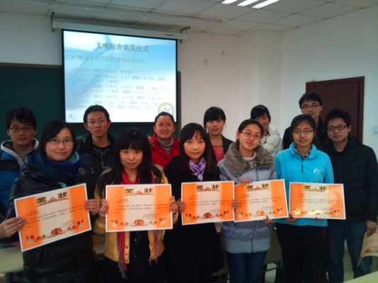 本次活动为时半个月,面向2011级社工硕士。由三个班生活委员杨欣萌、薛舒萌、周亚楠负责活动的策划、宣传及组织评审工作。围绕“卫生”、“文化”及“安全”这三大板块,组委会制定活动评分细则,组织评分、核算分数并进行公示。经过三周评比分数累计,共评出一、二、三等奖、特色奖及鼓励奖。中心何辉副主任出席颁奖仪式并给获奖同学颁发荣誉奖状及纪念品。