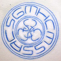 本方案主标的设计将文字与实物形象相结合:文字部分“文博”代表我中心,言简意赅;实物部分则将“文博”二字经过造型、着色(青铜色)等艺术加工,从整体上组合成我国最具有代表性的历史文物之一——鼎的形象,进一步突出了我中心的历史文化内涵及文博方向的定位。两个同心圆分别代表中心师生,外环上半部环绕文博中心完整名,下部为中心与研究生院英文缩写名称,代表中心与国际接轨。