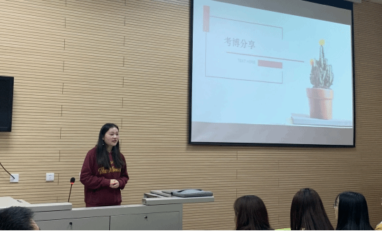 会上,四位博士生分别就自己认为最重要的点以及自己擅长的准备环节进行了分享。景乔雯结合自身的考博经历,详细地向大家讲述了学校选择,复习资料的准备,时间安排,做题体会四个方面的具体经验;彭付雪子就考博的原因和方法分享了自己的经验,另外还讲述了英语学习方面的经验,告诉大家在平时的学习中注重积累与坚持;欧阳璇宇分享了自己对于学校选择、联系导师的经验,告诉大家可以多选择几个学校来准备;张宾给大家讲述了考博的理由以及心态的重要性,让大家对考博有了更清楚的认识。四人从不同方面为研究生们提供了考博复习的建议,现场的同学们都觉得收获满满。