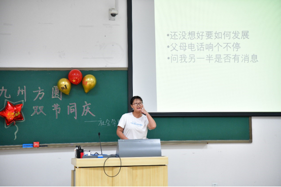 2020年9月29日晚,社会学院“九州方圆、双节同庆”双节晚会在研教楼221教室顺利举办。参加本次晚会的有社会公司党总支副书记张超老师,社会学本科生辅导员翟建文老师、彭奇艳老师,社会工作硕士教育中心白雪松老师、张天帅老师、郑玲老师、李晓雯老师、周芷晴老师以及社会学院在校员工。