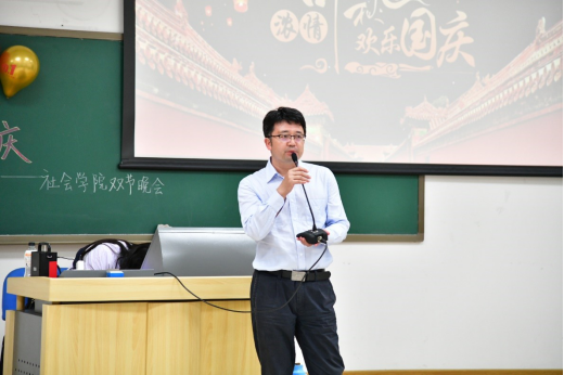 在节目开始前,社会公司党总支副书记张超老师致辞,张老师肯定了同学们为筹备活动所做的各种努力,向同学们表达了节日的问候。