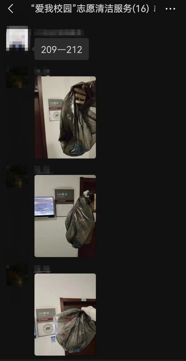 本次志愿服务活动采取自愿报名的形式,面向社会学院所有本科生招收志愿者。在短短几天时间内,15位志愿者的名额全部招满。活动过程中,每个志愿者负责固定的若干个教室,每天自主安排时间清理研教、本教课桌内杂物。