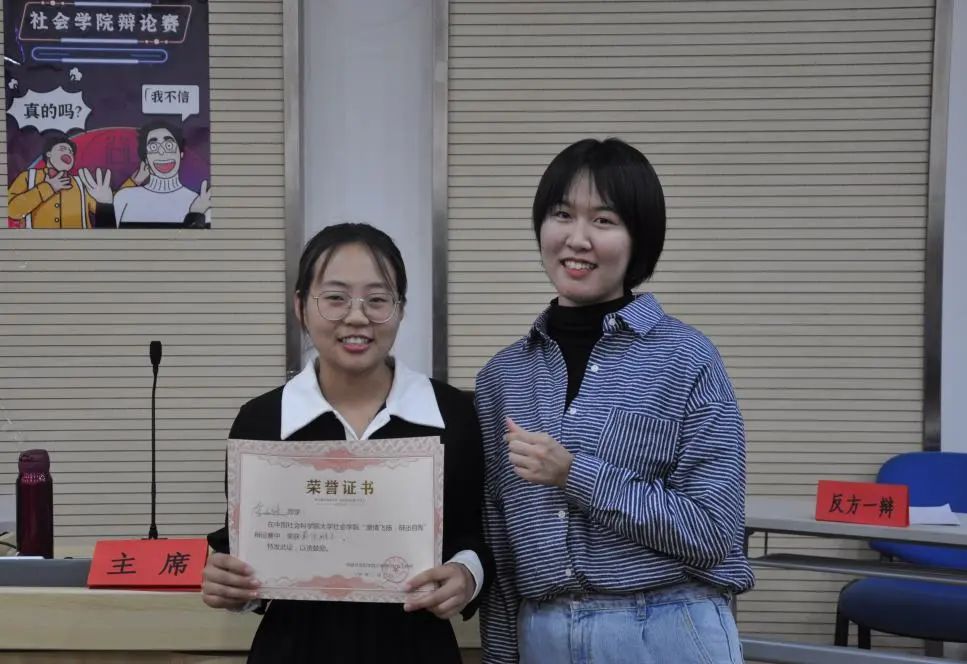 比赛结果尘埃落定,社会学院“激情飞扬、辩出自我”辩论在两位老师的颁奖中画上了圆满的句号。感谢所有辩手们对于辩论赛的精心准备与精彩表现,感谢评委老师与观众同学们对辩论赛的关注与支持!