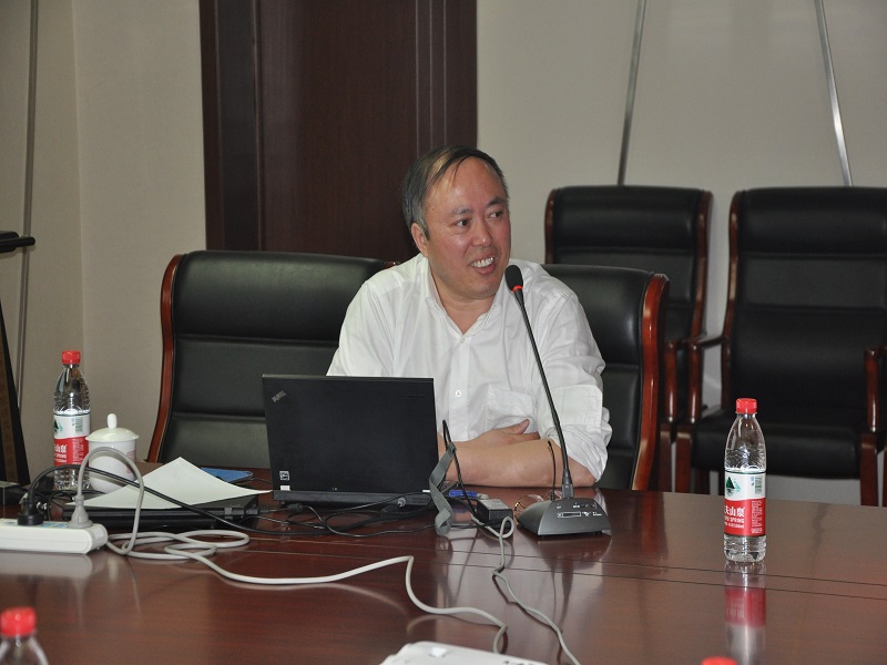 图为陈光金所长做以“新常态时期的社会发展——从以数量导向的发展模式到以质量导向的发展”为题的研讨