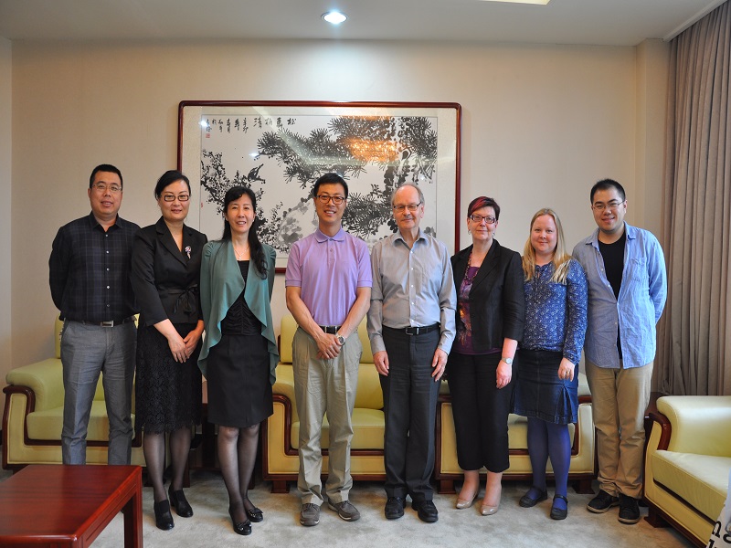 图为王兵副经理等与芬兰国家社工大学联盟主席等会谈合影