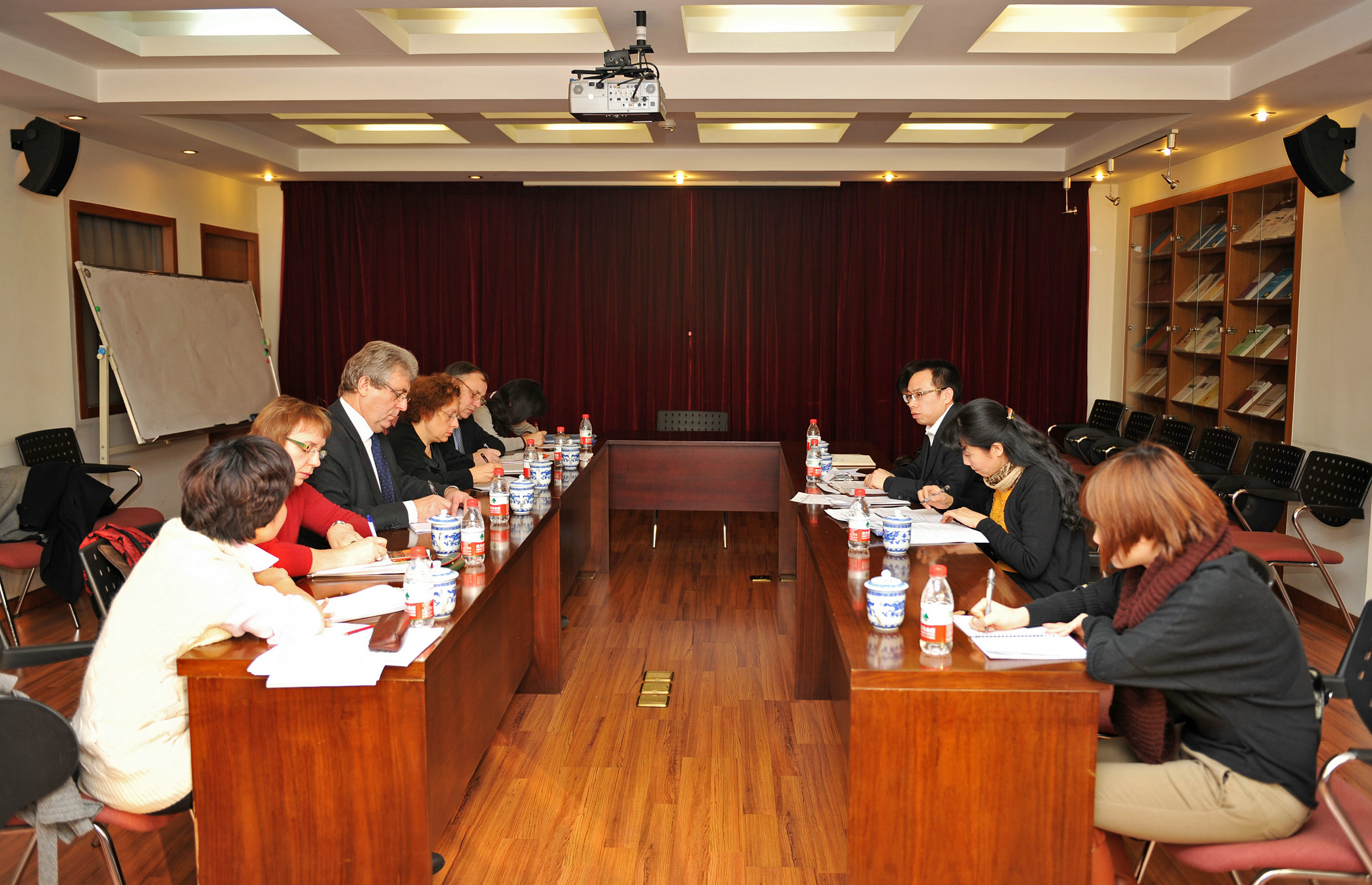 22日上午,三位法国专家与北京市民政局组织处(社工处)李仁利副处长、北京市民政教育管理学院经理赵书阁、副经理李为民、科员张英姬分别进行会谈。李仁利副处长首先介绍了北京市开展社会工作教育培训的基本情况,北京市民政教育管理学院赵书阁经理介绍了该院的基本情况及其社会工作培训的基本情况。双方座谈在极其热烈的气氛中进行。