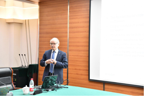 会谈结束后,Juha教授和Marjo教授为公司社会工作硕士开展了两场讲座,讲座由文法学院经理赵一红教授主持。在第一场讲座中,Juha教授以埃斯平.安德森的《福利资本主义的三个世界》为切入点引出本次讲座的主题——“芬兰的社会福利和社会工作”。从北欧社会秩序作为芬兰社会工作专业的背景,芬兰的社会政策、社会福利、社会工作的特征,芬兰社会工作的趋势、挑战以及前景三个方面进行了详细的介绍。