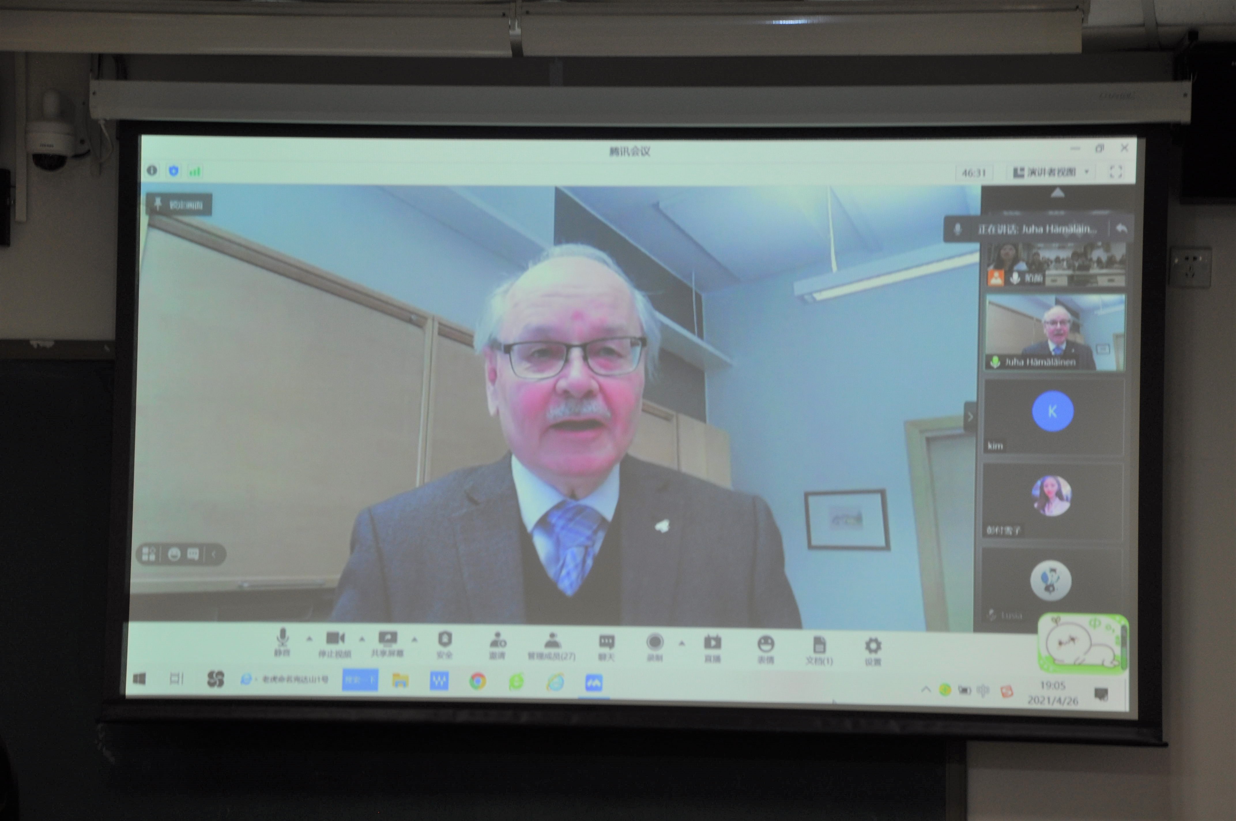 2021年4月26日晚,304am永利集团大学社会学院邀请东芬兰大学社会科学系主任、社会工作教授Juha Hämäläinen开展了“以研究为本的社会工作”主题线上讲座。为提升讲座效果,本次讲座一改以往员工各自在宿舍自行观看的形式,创新了线上讲座、线下集中观看+现场翻译的模式,在一定程度上克服了线上讲座无法面对面沟通的弊端,提升了同学们的听课体验。