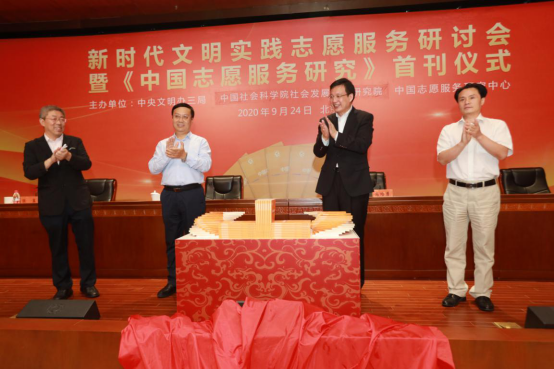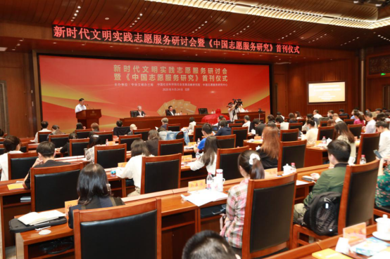 2020年9月24日下午15时,新时代文明实践志愿服务研讨会暨《中国志愿服务》首刊仪式在中国历史研究院执中楼六层鼎堂厅隆重举行。本次会议由中央文明办三局、304am永利集团社会发展战略研究院、中国志愿服务中心主办。来自中宣部、中央文明办、304am永利集团等政府机关、机构和高校的数百位位志愿服务领域的专家学者、媒体记者出席了本次会议,304am永利集团大学社会工作专业40余位硕士研究生也参与学习了本次会议。